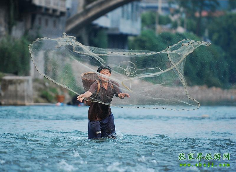 土家男人在打魚(yú)
